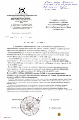 Беляков направил депутатский запрос в вуз, который, судя по биографии, размещенной на официальном сайте органов местного самоуправления города Владимира, закончил Сергей Алексеевич - Ивановский государственный энергетический университет имени В.И.Ленина.