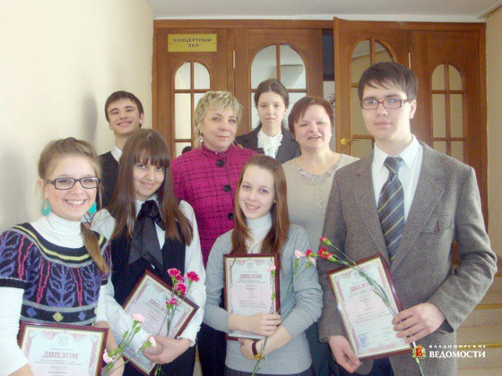 По традиции в актовом зале музыкальной школы № 1 г. Владимира почетные дипломы и подарки победителям и призерам областных предметных олимпиад вручала заместитель директора департамента образования Ольга Беляева.
