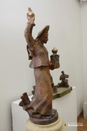 Впрочем, помимо центральных композиций из белого камня есть и другие. В частности, внимание привлекает скульптура «Суздалянка». Образ девушки в кокошнике и русском сарафане, держащей в одной руке белокаменную церковь, запомнился многим. Именно такой «герб» древней Суздальской земле создал Владимир Благовещенский. Что ж, во взгляде художника - истина.