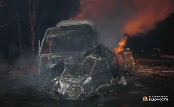 На следующий день в 20 километрах от этого места и тоже около 23 часов произошло еще одно ДТП. Грузовик «Вольво» на большой скорости зацепил легковушку-классику, которая от удара вылетела на встречную полосу и столкнулась с автомобилем-бурилкой ГАЗ-66. Моментально и легковушка, и «Вольво» загорелись. ГАЗ-66 отбросило в сторону и перевернуло. Водители всех автомобилей получили травмы различной степени тяжести. Пассажир «Жигулей» сгорел заживо.