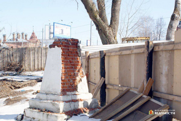 Бюст на Студеной горе появился вскоре после открытия неполной пятой школы. А она приняла учеников в 1936 году. По словам Ирины Чистяковой, заказал его в одной из мастерских Москвы шеф этой школы - хлопчато-бумажный трест. Установили бюст аккурат напротив памятника Сталину. Монумент вождю народов разрушили после ХХ съезда. А вот у бюста Пушкина еще в прошлом году школьники и писатели читали стихи, в день рождения поэта приносили к памятнику цветы. В этом году на старом месте их встретит полуразрушенный постамент за грязным строительным забором.