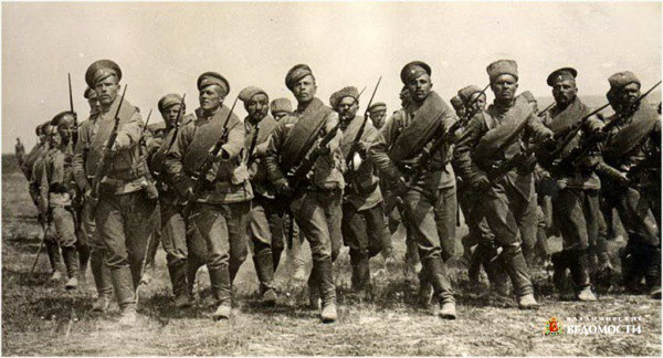 А позже, под Барановичами, именно Ковровский полк принял на себя первую огнеметную атаку немцев. Результат - более 2 тысяч пропавших без вести, то есть попросту неопознанных обгоревших тел. В целом, по данным А.Самойлова и А.Колерова, которые проанализировали все бои и число награжденных Георгиевскими наградами, 217-й полк зарекомендовал себя особо стойким в обороне. Кстати, среди награжденных Георгиевским крестом был полковой священник протоиерей Владимир Праницкий.