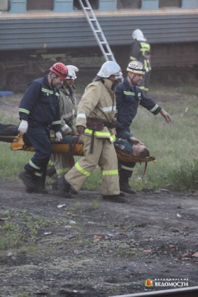 Так выглядела легенда тактико-специального учения по ликвидации и минимизации последствий теракта на железнодорожном транспорте, проведенного в четверг поздним вечером в Петушках. Участвовали сотрудники МВД, МЧС, ФСБ, медицины катастроф и других служб - всего около 300 человек. Также в учении было задействовано 60 единиц техники, в том числе вертолет....Сразу же после того, как произошел взрыв, началась ликвидация его последствий. Был развернут оперативный штаб. По легенде, 10 человек, находившиеся в вагонах поезда, получили тяжелые ранения. 8 человек погибли. На место ЧП прибыли спасатели, пожарные, медики... Пострадавших увезли в госпиталь, а тех, чьим жизням угрожала реальная опасность, потом на вертолете доставили в гражданские больницы...