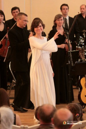 Губернаторский симфонический оркестр выступил в дуэте с талантливым бардом. Классические музыканты с подчеркнутой осанкой и выдержанным стилем в музыке, безупречный дирижер и гостья в белоснежном платье, хрупкая и босоногая, словно нимфа... Но этот диссонанс оказался как нельзя кстати. Владимирцы были в восторге.