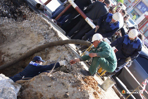 Андрей Шохин заявил, что встреча с журналистами не случайно происходит на этом объекте. По максимуму все работы уже выполнены за 14 дней, компания «ВКС» также выполняет все взятые ранее обязательства. Из общего количества «отключенных» (550 домов) более 100 домов уже подключены к горячей воде. Это означает, что примерно 80 тысяч жителей областного центра уже могут свободно пользоваться горяченькой хоть каждый день. Денис Уланов добавил, что все разводящие врезки сетей по графику уже включены. Есть небольшие проблемы на проспекте Ленина и Октябрьском проспекте, но до сегодняшней ночи все эти сети должны быть включены. Замечу, что речь идет не о магистральных сетях, которые полностью отремонтированы и включены в работу, а о сетях разводящих.