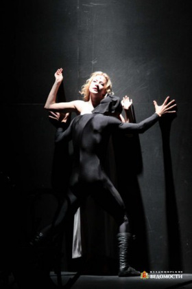 Исполнитель главной роли Дмитрий Бозин, знакомый владимирской публике по роли Соланж в «Служанках», и в этот вечер был на высоте, в прямом и переносном смыслах. Вместе с Игорем Неведровым (Панталеоне, друг Арлекина) они - классические представители труппы Виктюка: сильные драматические актеры с балетной выучкой, овладевшие еще и азами циркового искусства. Такой арсенал вкупе с куражом и полной самоотдачей владимирская публика оценила возгласами «браво» и внеурочными аплодисментами, которые артисты сорвали несколько раз за вечер. Впрочем, при всей спортивной зрелищности действа главная цель трюков - воплощение режиссерского замысла, который у Виктюка чрезвычайно многогранен.