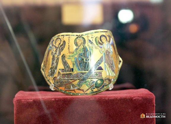 В музее не утверждают, что именно Андрей Боголюбский был обладателем этого дорогого предмета. Однако основания соотносить его с именем нашего князя, пусть и не слишком веские, есть. И не стоит думать, что мысль сия получила развитие в связи с юбилейной датой, как это часто бывает. Первым эту идею высказал русский искусствовед Георгий Филимонов еще в XIX веке. Да и в Лувре экспонат снабжен надписью «Армилла (то есть наплечник) Андрея Боголюбского». Найден наплечник был в ризнице Успенского собора Владимира, где покоятся мощи святого благоверного князя.