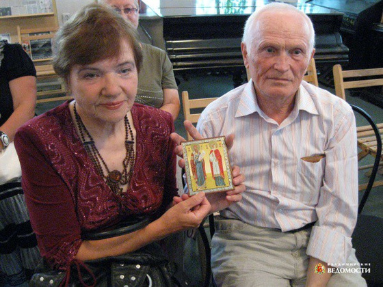 На праздник были приглашены 16 пар с семейным стажем от нескольких лет до нескольких десятилетий. Почти все они хорошо известны вязниковцам благодаря своей трудовой и общественной деятельности, к тому же многие являются постоянными участниками творческих вечеров, проводимых в музее. Михаил Латышев и Лев Заказов ‑ известные вязниковские певцы, Валерий Тарасов и Сергей Дубровин ‑ поэты. Заведующая отделом ЗАГС Марина Воробьева тепло поздравила всех участников праздника и вручила каждой паре в качестве оберега освященную икону муромских святых. Кстати, такие же иконы были подарены ею в загсе тем шести парам, что 8 июля 2011 года заключили свой брак. Свидетельства о регистрации семейного союза, только особые, были вручены и на вечере. Владимир и Валентина Голышевы получили такой документ по случаю рубиновой свадьбы (40 лет), которую они отпраздновали в этом году, а Сергей и Любовь Серегины благополучно дожили до коралловой свадьбы (35 лет). Специальные почетные грамоты получили семейные пары «старшего поколения» - Тарасовы и Вигилянские. Валерий Тарасов по случаю праздника подарил Музею песни свой новый сборник, посвященный Дню семьи, любви и верности. У него с этим праздником связь особая ‑ его мать родилась под Муромом, в знаменитом селе Карачарово.В ходе вечера его героям пришлось принять участие в разнообразных интересных конкурсах. Одни делали куклы-обереги, другие плели веночки, третьи отвечали на каверзные вопросы. Звучало немало песен и стихов, в том числе одну из песен исполнил Владимир Васильев, принадлежащий к большому роду, известность которому принес исполнитель роли неуловимого мстителя Яшки-цыгана Василий Васильев. Ведущая вечера Людмила Антонова рассказала, что в Музее песни уже в течение 10 лет стало хорошей традицией чествовать молодоженов. Замечено, что эти пары в дальнейшем живут счастливо.