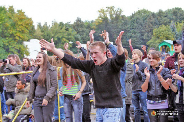 Открыли программу владимирские музыканты из группы «Дядюшка Пекос». Чересчур долго публику с самого начала не пришлось заводить - разгоряченные фанаты на протяжении всего выступления бурно выражали свои эмоции. «Я в восторге», - признался после выступления солист группы Егор Корсаков. «Дядюшке Пекосу», кстати, и года еще нет. «Первый концерт у нас состоялся, когда только три репетиции прошли. У нас всегда все так быстро. Только позавчера к нам пришел трубач, а сегодня мы выступаем. Год назад я был среди зрителей и даже мечтать тогда не мог, что попаду на сцену. Первым быть всегда труднее, но встречали нас тепло», - говорит Егор.
