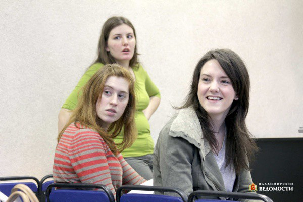 Участвовавшие во встрече американки рассказывали о своей стране, о штатах, в которых живут, о колледжах и университетах, в которых учатся. Выяснилось, что девушки из США уже два месяца живут во владимирских семьях, едят борщ и котлеты, ходят в театры, пытаются адаптироваться в российских магазинах, автобусах, клубах. Все это необходимо, если хочешь выучить русский. А они хотят.