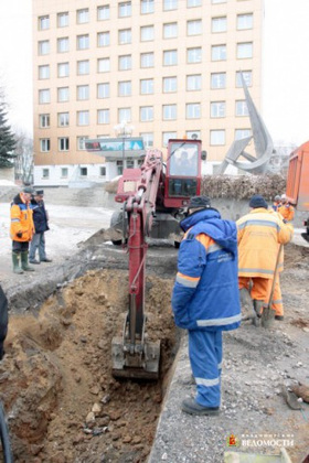 Вчера утром специалисты Владимирводоканала обнаружили утечку из водовода, проложенного на улице Горького (прямо напротив здания мэрии).