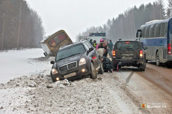 Утром в минувшую субботу в Суздальском районе съехали в кювет несколько автомобилей, включая снегоуборочный, а также пассажирский автобус.