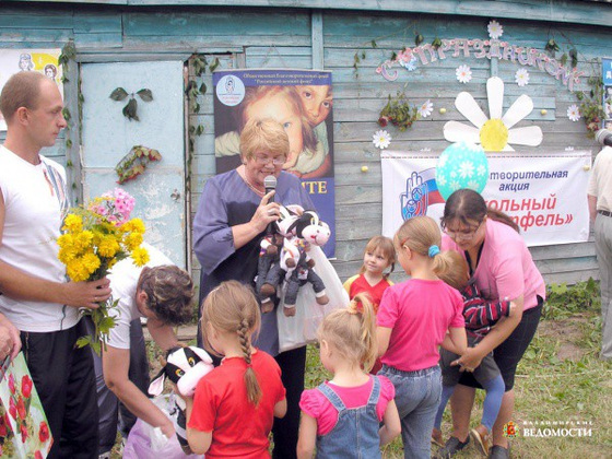 Продолжается и программа «Дети сельской глубинки». В 2011 году были куплены и переданы в многодетные малообеспеченные семьи две коровы и четыре телочки. Так что стакан парного молока стал для них гарантией благополучия. Одна из малообеспеченных - Наталья Белякова из Судогодского района, в семье которой подрастают четверо собственных и двое приемных детей, оставшихся сиротами после смерти мамы. Всего же за период действия этой полезной программы сельские семьи получили более 40 коров, 15 коз, 15 поросят. 18 родившихся и подросших телочек от ранее переданных коров уже дают молоко детям из новых семей.