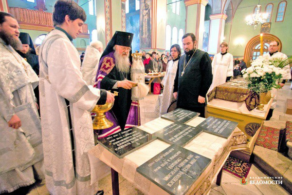 В субботу в приделе Успенского собора были освящены мемориальные доски в память о пяти утраченных владимирских храмах. В освящении принимал участие архиепископ Владимирский и Суздальский Евлогий, секретарь епархии по внешнецерковным связям протоиерей Евгений Липатов, глава города Сергей Сахаров.