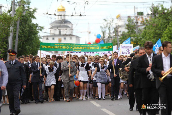 Ради праздника центр города превратился в пешеходную зону. Девчонки - с бантами, в форменных платьях с белыми фартучками, ребята - в парадных костюмах. Нарядные, веселые и как-то сразу повзрослевшие…В честь праздника выпускники стройными колоннами прошлись от Золотых ворот до Соборной площади, поучаствовали в конкурсах, покружились во всеобщем вальсе, приняли поздравление от первых лиц города и представителей Епархии.