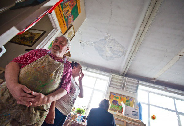 Дом действительно находится в плачевном состоянии. Во время дождя вода заливает второй этаж, на котором располагаются мастерские художников, нанося непоправимый вред картинам.