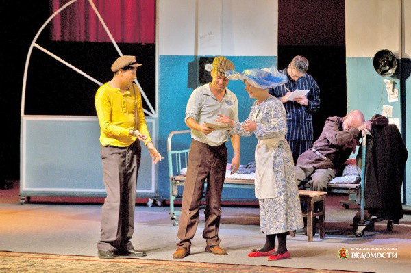 Пьесу, словно сотканную сценаристкой Натальей Скороход из фрагментов стихотворных шедевров Самуила Маршака и разыгрываемых «под них» жизненных сценок, трудно причислить к какому-то одному жанру. Нет здесь, по-моему, и четкого сюжета. Я его во всяком случае не уловила.Декорации - пролетарские в своем минимализме, возведенном в принцип, но - достаточные для иллюстрации происходящего на сцене. Этот спектакль - словно зарисовка благословенной советской эпохи, когда наши люди еще верили, что она - благословенная. Когда они носили простенькие платьица, полосатые пижамки, красные косынки и рубашки-косоворотки, украшаемые разве что красными бантами. Пировали и распевали под гитару по поводу Дня 7 ноября - ведь он же «красный день календаря!». Жили (и были вполне счастливы) в коммунальных квартирах (в бывших аристократических домах), не мешая друг другу даже с одной уборной на весь коридор, радуясь всяким пустякам, мечтая о грандиозных свершениях и ничуть не сомневаясь, что когда-нибудь их удастся достичь. Зарисовки этих мечтаний чебоксарцы, кстати, тоже визуализировали. Вплоть до дамы с «чемоданом, саквояжем, котомкой и маленькой собачонкой», нацелившейся на Бразилию.