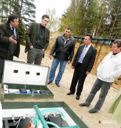 На обслуживание поставлено пять двухэтажных жилых домов на отдаленной от центра поселка улице Песчаной, насчитывающих в целом 72 квартиры. Общая стоимость объекта - 2,4 млн рублей, из них доля районного бюджета составляет 1,8 млн рублей, остальное оплачено из регионального бюджета за счет соответствующих областных программ, что значительно - в десятки раз - дешевле, чем при сооружении традиционных громоздких очистных сооружений со сроком окупаемости 40 лет. Осуществленный в Великодворье проект окупается за 20 лет, что тоже немало, но, согласитесь, разница впечатляет. Лично убедиться в жизнеспособности новодела и эффективности вложения бюджетных средств на место событий прибыли Алексей Кабенкин, глава района, Виктор Шершнев, директор департамента ЖКХ, и Алексей Мигачев, директор департамента природопользования и охраны окружающей среды областной администрации. Убедились и одобрили.Очистные сооружения, заказчиком которых стала администрация района, спроектированы на основе типового принципа действия солидной московской организацией, предоставившей соответствующее оборудование. Установка работает в автономном режиме и очищает различные жидкие отходы на основе биологической очистки, сочетаемой с мелкопузырчатой аэрацией - искусственной подачей воздуха с целью окисления органических частиц в стоках. Обработанная таким образом вода может использоваться в технических целях. В нашем случае очищенная вода выбрасывается в пруд, далее в ручей и речку. Все экологически безупречно: степень очистки достигает 98%, что обеспечивает надежную защиту окружающей среды. Работа станции не сопровождается неприятным запахом, поэтому ее соседство не страшно жилым помещениям. Очистные сооружения этого типа очень компактны, на разных стадиях их работы используются герметичные резервуары (в Великодворье - два по 12 кубов), установленные на глубине более трех метров от фундамента. При необходимости можно установить дополнительные емкости. Персонала не требуется, но необходим регулярный контроль, который может осуществляться визуально через технологические «окна». И никаких административных зданий. На основании вышесказанного Алексей Мигачев сделал вывод, что подобные сооружения можно использовать внутри населенных пунктов, если решить вопрос с отводом очищенных вод. Кстати, подобный проект использован в поселке Красное Эхо в бытность главой поселка Алексея Кабенкина при строительстве первых домов по программе «Социальное жилье» и полностью себя оправдал.