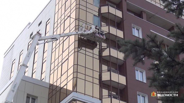 О качестве строительства во Владимире. С нового здания облсуда снимают золотые панели. Владимирцы - в недоумении. Прошел всего месяц с торжественного открытия «Дворца правосудия» на площади Победы, а там снова появился строительный кран. Рабочие демонтируют, а затем снова устанавливают на места облицовочные панели. Что бы это значило?