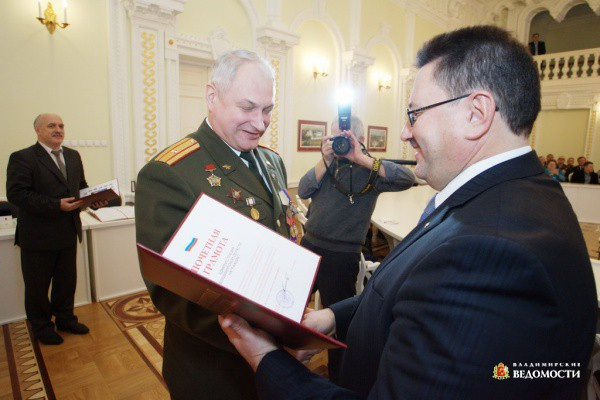 Председатель Гусь-Хрустального отделения Российского союза ветеранов Афганистана Александр Давыдов тоже получил в этот день благодарность администрации области.