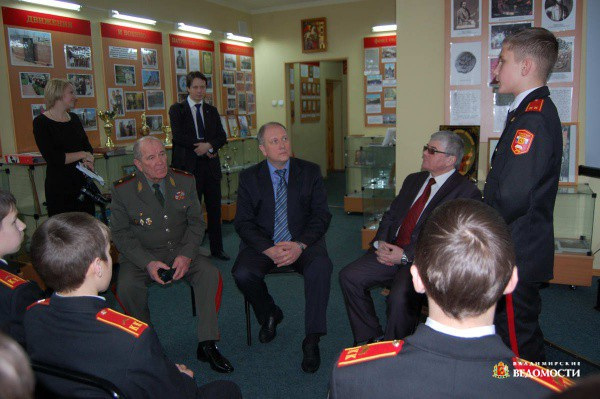 Сергей Рыбаков посмотрел условия жизни кадетов: казарму, столовую, учебный корпус, центр досуга, стрелковый тир. Встретился с педагогами, побывал в музее, где побеседовал с самими воспитанниками. Ребята рассказали о распорядке дня, о трудностях и радостях своей кадетской жизни. Они ездят на экскурсии в Москву, Севастополь и Волгоград, в военные части, отдыхают в «Орленке», дружат с ребятами из Вологодского кадетского корпуса. Не всегда хватает времени на самоподготовку к урокам, за двойки грозит лишение увольнения, самый тяжелый год ‑ первый, а нелюбимый день ‑ рыбный…
