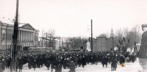 Один из материалов, а также опубликованное фото нам предоставил Николай Морозов, заведующий историческим отделом ВСМЗ.В фондах музея-заповедника хранятся дневники жительницы Владимира Зинаиды Дмитриевны Федоровской, которая в начале 1950-х годов, после аспирантуры Ботанического института в Ленинграде, вернулась в родной город и готовилась к защите диссертации. В своих дневниках Зинаида Дмитриевна подробно описала, какие чувства она и ее мать-учительница испытывали при известии о смерти вождя, как выглядел город в эти дни. Вот строчки из ее дневника.
