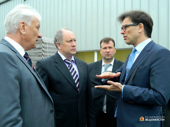 Также Сергей Рыбаков побывал на предприятии немецких инвесторов Бау Текс, выпускающем продукцию на основе стекловолокна, вырабатываемого на расположенном по соседству заводе, владельцами которого также являются зарубежные инвесторы. Здесь своя закавыка: затягивается оформление земельного участка под дальнейшее расширение производства, на котором заняты сотни горожан. Осмотрев цеха, Сергей Евгеньевич выслушал сетования по этому поводу Юрия Гришкина и гендиректора фирмы Бау Текс Ахима Луттера.
