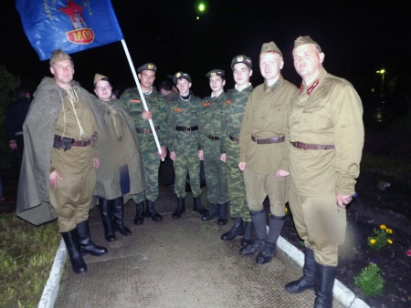 Дождливая погода заставила ребят и их старших товарищей надеть военную форму и плащ-палатки. Однако для проведения акции памяти это оказалось своеобразным символом. Ребята зажгли свечи и провели митинг. Все «бойцы» отряда «Гром» участвовали в поисковых экспедициях и захоронениях останков погибших во время Великой Отечественной войны солдат, расшифровывали найденные в солдатских медальонах записки, встречались с родственниками числившихся пропавшими без вести. Потому слова, сказанные о героях войны, шли в эту ночь от сердца…