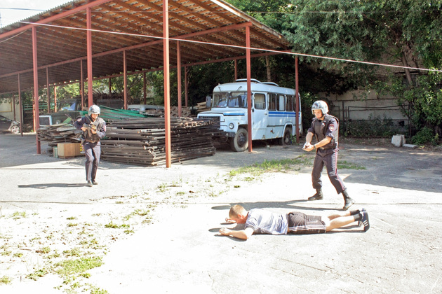Руководитель судейской бригады смотра-конкурса Евгений Симонов рассказал, что в данном случае оцениваются, насколько правильно был поставлен служебный автомобиль, экипировка полицейских, владение оружием... Кроме того, группа задержания должна профессионально осмотреть объект, выявить следы проникновения преступника и задержать его.