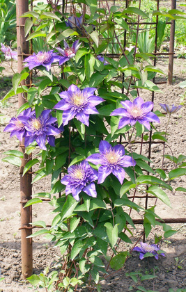 Конечно, через какое-то количество лет куст клематиса, как и любых цветов-многолетников, «выдыхается» и начинает давать более мелкие и редкие цветки. И держать свои растения все время «на пике» - главное искусство цветовода. Кто-то своевременно (через 8-10 лет после посадки) пересаживает куст, деля его на части, на новые места, кто-то просто раз в год отсаживает от основного куста кусок с корнями, засыпая ямку перегноем, чтобы провоцировать постоянное омолаживание куста (это очень хороший способ и напрасно его подзабыли), кто-то ежегодно часть стеблей отводит в сторону и укореняет, чтобы куст медленно перемещался на новое место и попутно тоже омолаживался.
