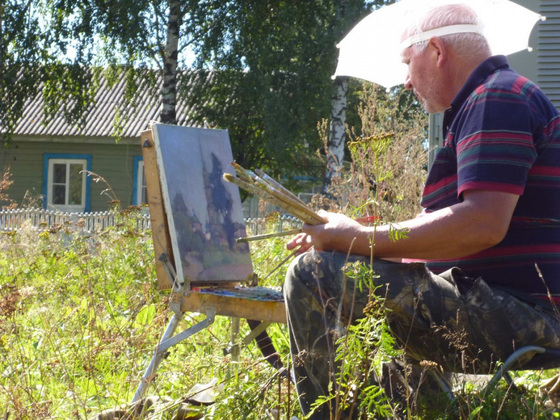 На десять дней сельская школа в Давыдово стала местом жительства для художников. Ранний подъем, завтрак и на рассвете - с этюдником «на натуру».
