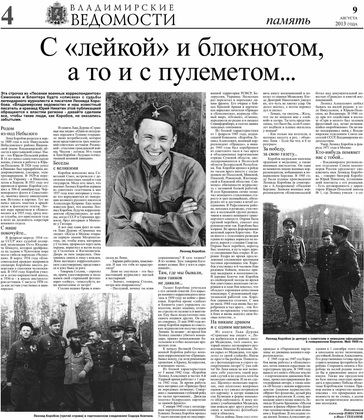 9 августа «Владимирские ведомости» напомнили землякам о фронтовом корреспонденте Леониде Коробове (материал «С «лейкой» и блокнотом, а то и с пулеметом...»). Мы сообщили о стремлении администрации школы, где он учился, ветеранов и родственников журналиста-писателя присвоить юрьев-польской школе № 1 имя ее знаменитого выпускника.