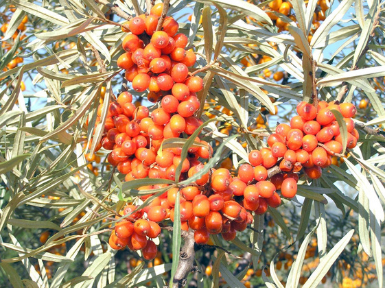 Да и не столько сам урожай ягод для нас важен. Надо просто держать это растение в саду, потому что листья имеют те же лечебные свойства, что и ягоды. Чай из зеленых листьев облепихи так же действенен, как и облепиховое масло. Все гениальное просто: можно не ждать сентября для заготовки сока и масла из созревших ягод, а в течение всей весны и лета заваривать листья. Для этого годятся даже самые молодые растения, которые еще не начали плодоносить.