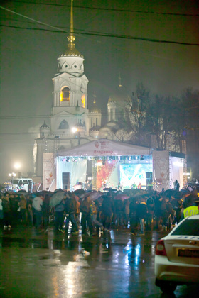 После зажжения чаши олимпийского огня на Соборной площади факелоносцы еще долго делились впечатлениями, а горожан спонсоры одаривали подарками и концертом.