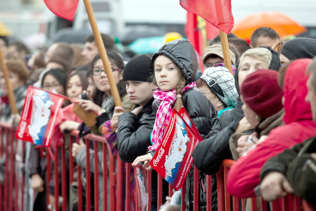 Факелоносцы в сопровождении «хранителей огня» и огромного пелотона машин (компании «Фольксваген», «Кока-кола», «Ингосстрах» и другие ‑ спонсоры действа) несли по улицам города не только факелы. Они искренне радовались данной им исторической миссии и заражали своим огнем других.