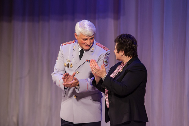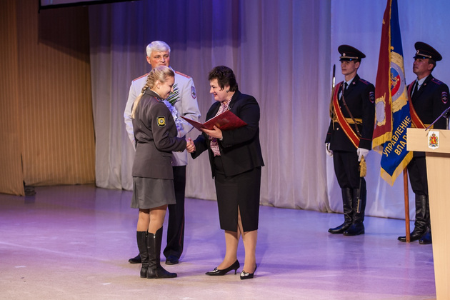 - Я с большим удовольствием вас поздравляю, поскольку речь о структуре, которая по уровню и разнообразию своего влияния на региональную безопасность несравнима ни с одной другой. Я убедилась в масштабах работы и роли органов внутренних дел, которую они играют в региональной и межрегиональной жизни. У нас совсем непростая область по очень многим параметрам: историческим, географическим, этнокультурным. Через нас идет тракт от столицы на восток. Здесь центр туризма, «Золотого кольца» и одновременно факторы и традиции 101-го километра. Знаю, как все это непросто сказывается на обстановке, характере преступности, трафике оружия и наркотиков. Наш регион очень привлекателен для криминала. Отсюда коррупция, миграционные проблемы, громкие преступления, аварийность. По состоянию преступности мы объективно не отстаем от крупных регионов Центральной России. И мне очень приятно сегодня говорить о том, что в таких непростых условиях коллектив вашего управления успешно справляется с задачами, которые поставлены президентом, правительством, министром внутренних дел. Мы не раз говорили, что у нашей области большое будущее. Мы будем серьезно менять облик региона, делать его привлекательным для инвестиций, развивать инфраструктуру бизнеса, делать область комфортной для людей. Для этого уже сейчас реализуем антикризисные меры, определяем перспективу развития малых городов. Будем строить дороги, жилье, вкладывать деньги в образование, культуру, здравоохранение, туризм. Но для этого нужно прозрачное правовое поле и ответственность власти. Мы рассчитываем, что органы МВД обеспечат эту задачу через жесткие антикоррупционные меры, через крупные и резонансные уголовные дела. Я знаю, как нелегко дается современная полицейская служба и в каком режиме вы работаете. Я благодарю вас за честную и беззаветную службу.