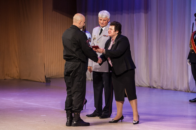 - Поистине легендарной личностью стал уже 14 лет возглавляющий отряд особого назначения Николай Шитов, награжденный двумя орденами Мужества и медалями, которые с трудом помещаются у него на груди. 16 лет командует СОБРом Александр Сироткин, тоже кавалер двух орденов Мужества. За мужество, отвагу и самоотверженность при исполнении служебного долга в Северо-Кавказском регионе 16 сотрудников ОВД нашей области отмечены государственными наградами. И свой человеческий долг полицейские выполняют... Лейтенант Миллер и прапорщик Борисов вынесли из огня трехлетнего ребенка; майор Комков спас утопающего; лейтенант Адамов и старший лейтенант Якунин приняли преждевременные роды прямо на посту ДПС. Ради таких примеров прежде всего и делалась реформа МВД.