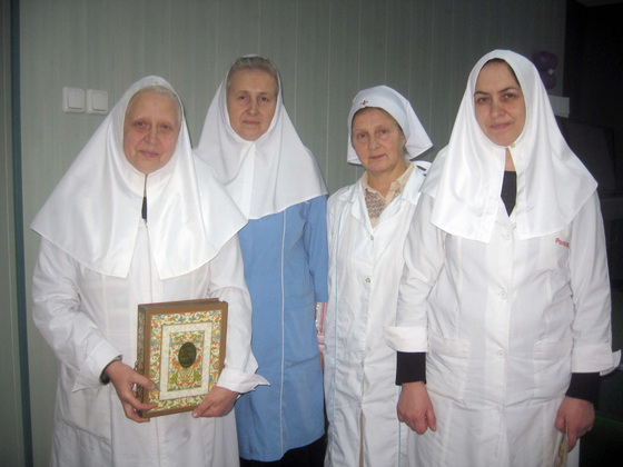 Поражают лица сестер - они будто светятся изнутри, а в глазах какая-то особенная радостная доброта. Таисия Васильевна Блохина, по профессии медсестра-лаборант, и врач-нарколог Лариса Васильевна Никишина помогают сестрам милосердия, не имеющим медицинского образования, лучше справляться с обязанностями.