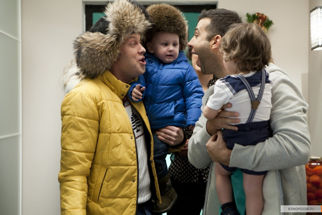 Конечно, Ивана Урганта и Сергея Светлакова затмить снова не удалось никому из персонажей, хотя экранного времени у них не так уж и много. Они теперь молодые, волнующиеся папаши, естественно, в центре истории, и докатятся аж до смирительных рубашек. Реальную конкуренцию (животные и дети переиграют любого артиста!) этим звездам составляют две влюбленные друг в друга собаки — породистая и не очень, и маленькая девочка им в помощь. И, конечно, мы снова видим добродушных «бивиса и батхеда» «Ёлок» - лажника и сноубордиста, на сей раз удирающих от военкома...