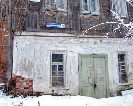 Летнеперевозинская, 22. Двухэтажный небольшой домик с резьбой и каменным нижним этажом. Похожие строили в богатых деревнях Ополья. В нем действительно сохранился дух старины. Но примечателен, на наш взгляд, он современным своим видом: выпавшими из обнажившейся кирпичной кладки кирпичами, сорванными с петель и прислоненными к стене воротами, ржавой табличкой с номером дома и аккурат под ней - сияющим зеркальным блеском аншлагом, сообщающим, что это памятник, охраняемый государством. По документам, охранное обязательство подписано в июне этого года. Числится дом жилым, однако признаков жизни в нем мы не заметили. В общем, подходящий памятник городской политике в сфере охраны культурного наследия.