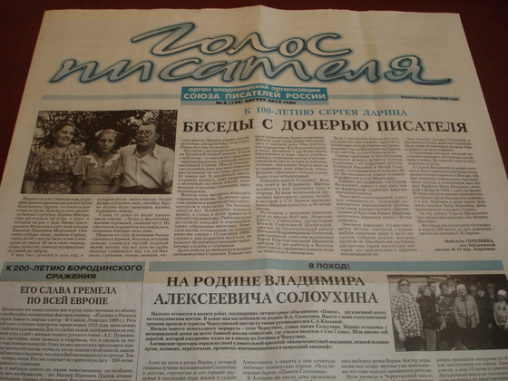 День российской печати с особым настроением встречали члены редколлегии «Голоса писателя». Спустя год забвения из-за финансовых трудностей учредителя газеты владимирское издание вновь выходит в свет. Напомню, что 3 сентября 2002 года был издан первый номер газеты. Он был совсем крошечным, по словам главного редактора, председателя областной писательской организации Светланы Барановой. Именно ей и принадлежала идея создания корпоративного издания, которое объединило бы единомышленников.