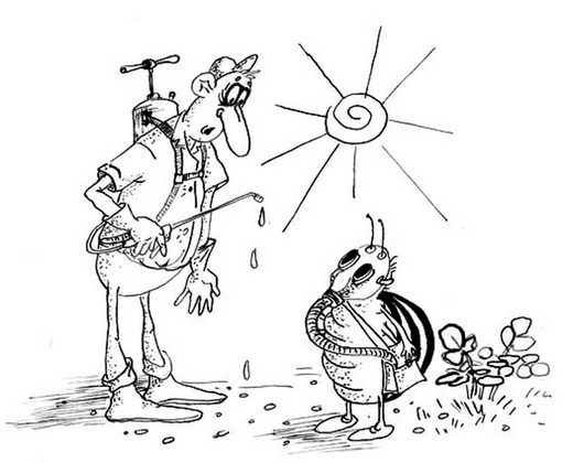 Наконец, качество самого препарата. По закону «очень свободного» рынка оно мало предсказуемо. О добром имени заботится только производитель, а мелко фасующим посредникам это ни к чему: они едут на чужих брендах. И только ленивый не использует высокий спрос. Если препарат показал хороший эффект, его производство можно увеличить вдвое, вдвое же снизив качество. Посему новые препараты могут быстро «терять эффективность». Вредителям в это время ‑ прямо санаторий. В шоке только дачник, весь вечер таскавший опрыскиватель: при виде живых и здоровых «отдыхающих» у него крыша вскипает!