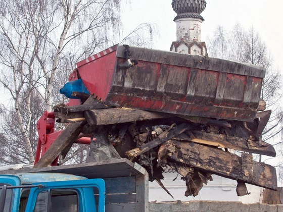 Первым шагом ‑ надеемся, к восстановлению монастыря - стала уборка его территории, оперативно организованная Александром Разовым. Буквально за два дня до «десанта Аксеновой» там убрали бурьян, вывезли мусор, коряги, гнилые и сухие деревья. Уже при нас рабочие трудились над сносом необитаемых, обгорелых, жуткого вида давно расселенных хибар с осыпавшимися стенами и крышами.