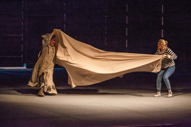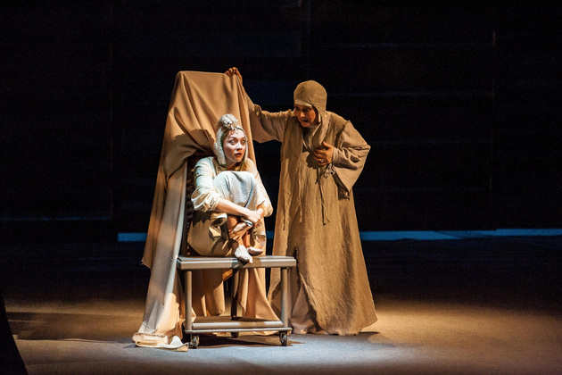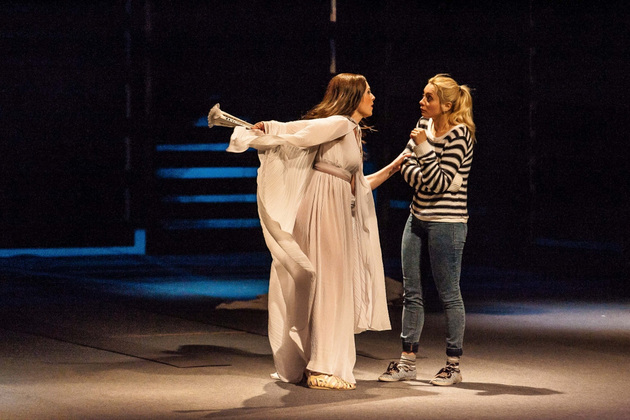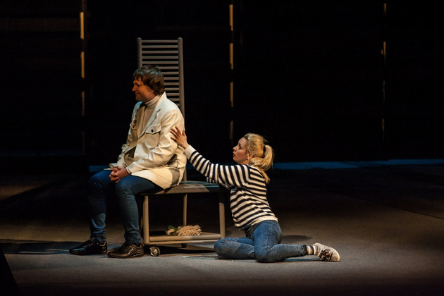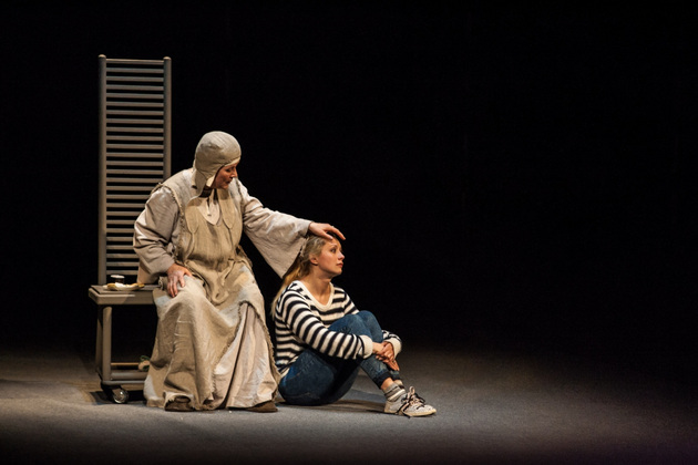 Однако действующие лица и исполнители, на которых держится смысл происходящего, просто обязаны быть сильнее! Трагедия Антигоны ничуть не сильнее трагедии ее сестры Исмены (Валерия Емельянова), а должно быть иначе. Зритель должен верить этой 20-летней бесстрашной девочке ‑ она национальная героиня, она все делает не зря, она нравственный ориентир. А на владимирской сцене появился упрямый подросток, одержимый юношеским максимализмом. Шапочка с ирокезом и кожаная куртка, появляющиеся на Антигоне в судьбоносные моменты, только усилили эффект упрямства, а порой бессмысленности поступков пубертатного периода. Подумалось: что еще ждать от девочки из неблагополучной семьи? Семьи, в которой отец убивает своего отца, мать является одновременно и бабушкой, а братья убивают друг друга. Но трагедия Софокла и пьеса Ануя не о семейных и психологических проблемах Антигоны! Она о другом, и это другое пока прошло через владимирскую версию «Антигоны» лишь пунктиром.
