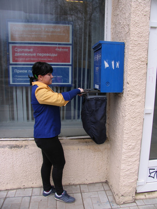Но пока народу немного, поэтому одна из операторов идет проверять почтовые ящики. Их в отделении два: один в помещении, другой на улице. Выемка писем - как минимум дважды в день. Утром или вечером после работы и в обед.
