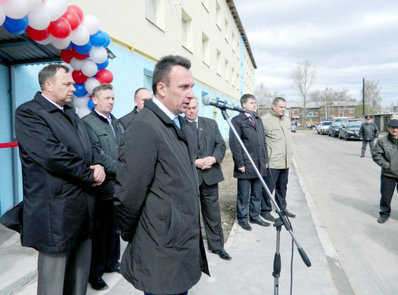 Обращаясь к новоселам, Алексей Викторович обратил внимание собравшихся на то, что это второй дом в Гусь-Хрустальном районе, сданный в эксплуатацию в текущем году. В январе получили новое благоустроенное социальное жилье 28 семей в поселке Красное Эхо. До этого новые дома были возведены в поселке Уршельском и деревне Вашутино. Таким образом, за три последних года были заселены три дома и золотковский ‑ четвертый. В этом году начинается строительство дома в Великодворье по Федеральной программе переселения из ветхого и аварийного жилья и жилого дома в городе Курлово в рамках областной целевой программы «Социальное жилье на 2008-2015 годы». Затем планируется строительство социального жилья в том же поселке Золотково. И во всех случаях в текущем году областной бюджет берет на себя 80% всех затрат.
