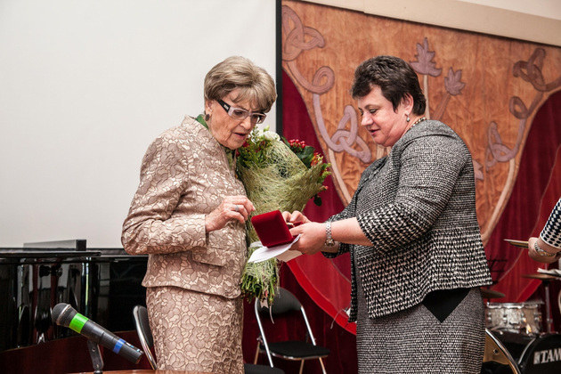 Орлова подарила Алисе Ивановне букет цветов, губернаторские часы и хрустальную вазу, только что изготовленную на восстановленном Гусевском хрустальном заводе.