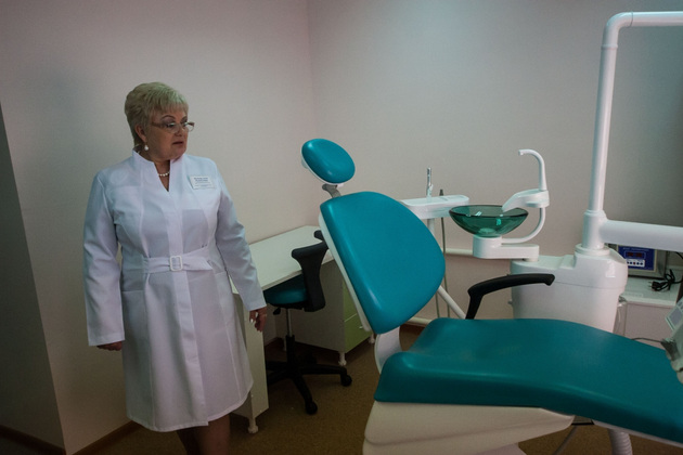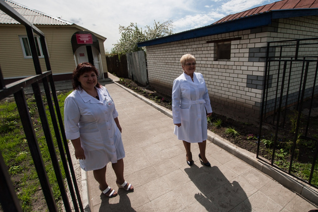Следующее звено системы здравоохранения ‑ это амбулатория, как в поселке Механизаторов. Там уже работают пять врачей и 23 медсестры, которые наблюдают 8,5 тысячи человек, в том числе 1300 детишек. Здесь лично я впервые увидела врача общей практики, который - это важно для сельской местности - заменяет 19 специалистов: от невропатолога до окулиста. Одна из таких мастериц на все руки - главный врач амбулатории Анна Михайловна Мягкова ‑ демонстрирует диковинный инструментарий. Из пенала размером не больше школьного достает приборчик для измерения внутриглазного давления.