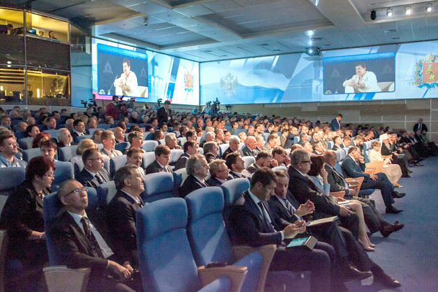 Один перечень ВИП-персон, что сочли необходимым приехать во Владимир, занял бы несколько страниц. Из всем известных были вице-премьер Ольга Голодец, министр финансов Антон Силуанов, полпред Президента в ЦФО Александр Беглов, топ-менеджеры «Газпрома» (Виктор Зубков), «РЖД» (Александр Мишарин), Фонда содействия реформированию ЖКХ (Сергей Степашин и Константин Цицин), члены Совета Федерации, депутаты Госдумы. Особый гость ‑ председатель Госсовета Крыма Владимир Константинов. Руководители области и всех ее муниципальных образований. Главы промышленных и сельскохозяйственных предприятий, вузов, депутаты ЗС... Словом, все, от кого зависят вектор развития региона и темпы этого развития.