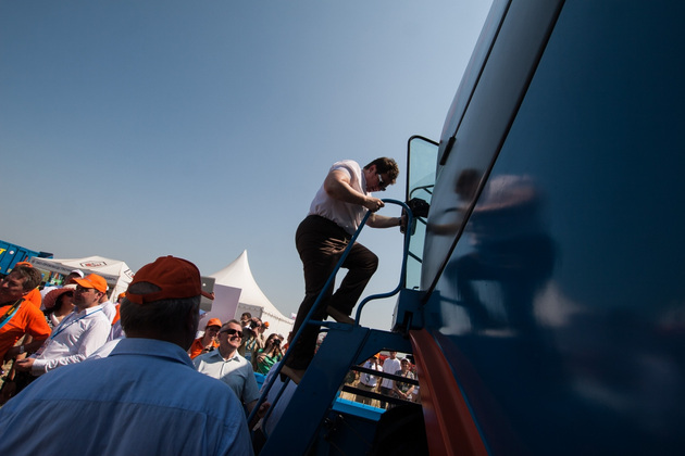 Светлана Орлова лично приехала на чемпионат, осмотрела выставку достижений агропрома. Интересовалась всем - от оборудования для молокозаводов до новых комбайнов. Губернатор даже поднялась в высокую кабину современного комбайна.